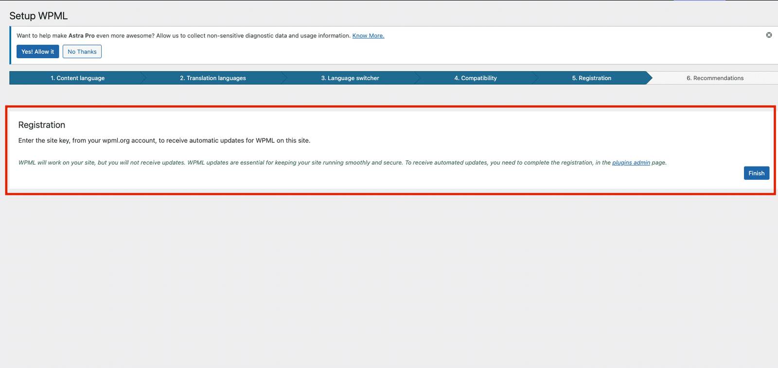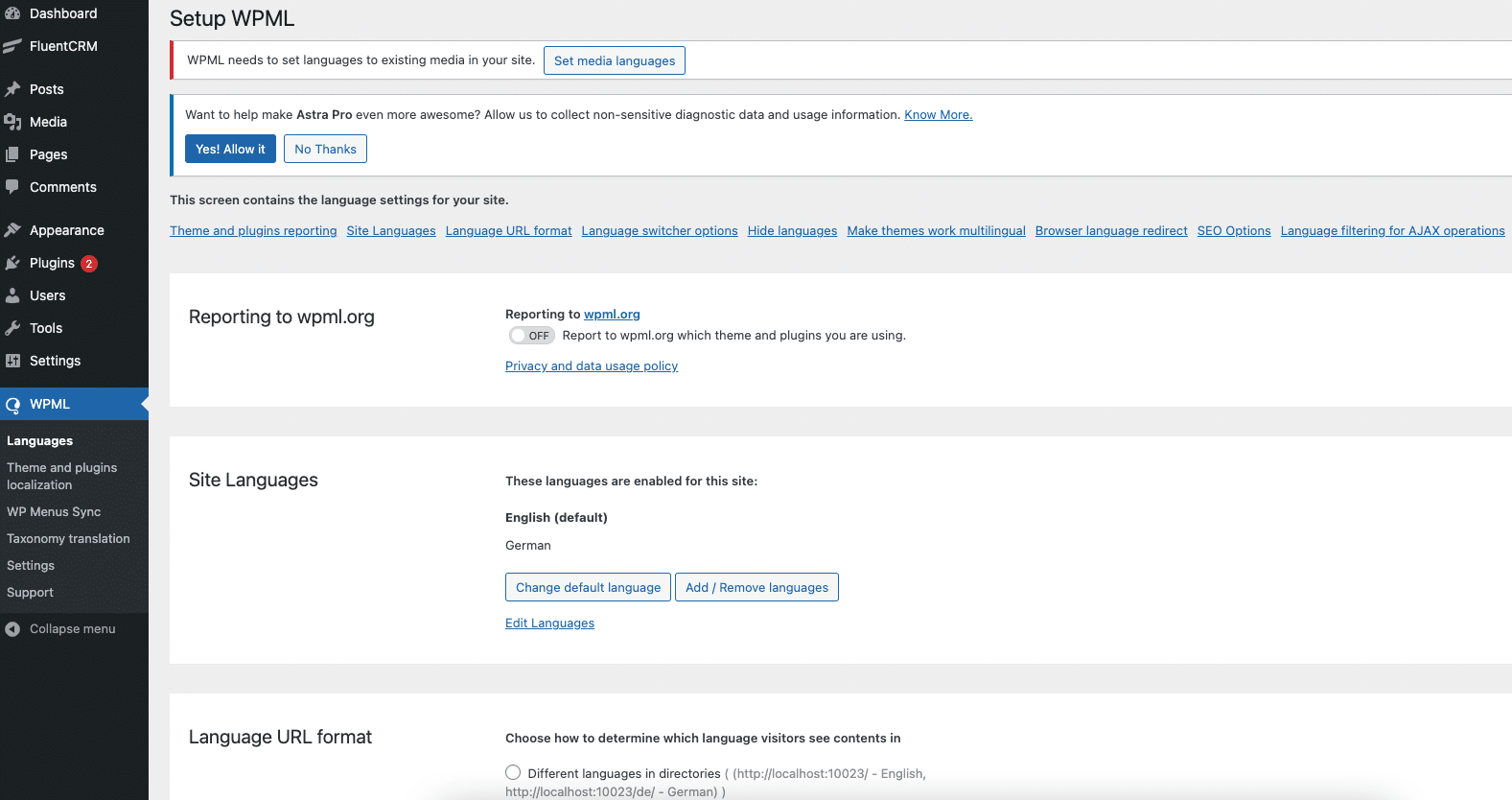 - En el menu de Wordpress te parecerá WPML, al desplegarse sus opciones veras “Lenguajes”, dale clic y sigue los pasos del wizard.